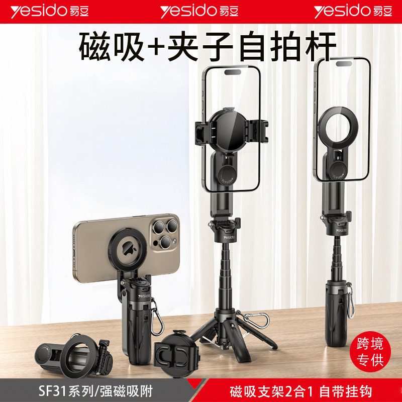 YEsido Penjepit Tongkat Selfie Magnetic Alat Pemotretan Teleskopik Mini Perjalanan Portabel Tongkat Selfie Lintas Batas Tripod