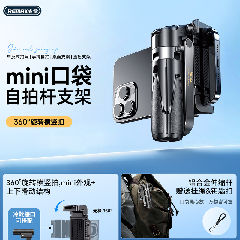 RAMAX Tiang Selfie Ponsel Lipat Mini Braket Ponsel Luar Ruangan Langsung Bluetooth Selfie yang Dapat Diteleskopik