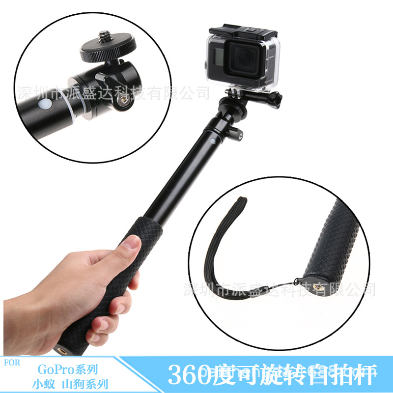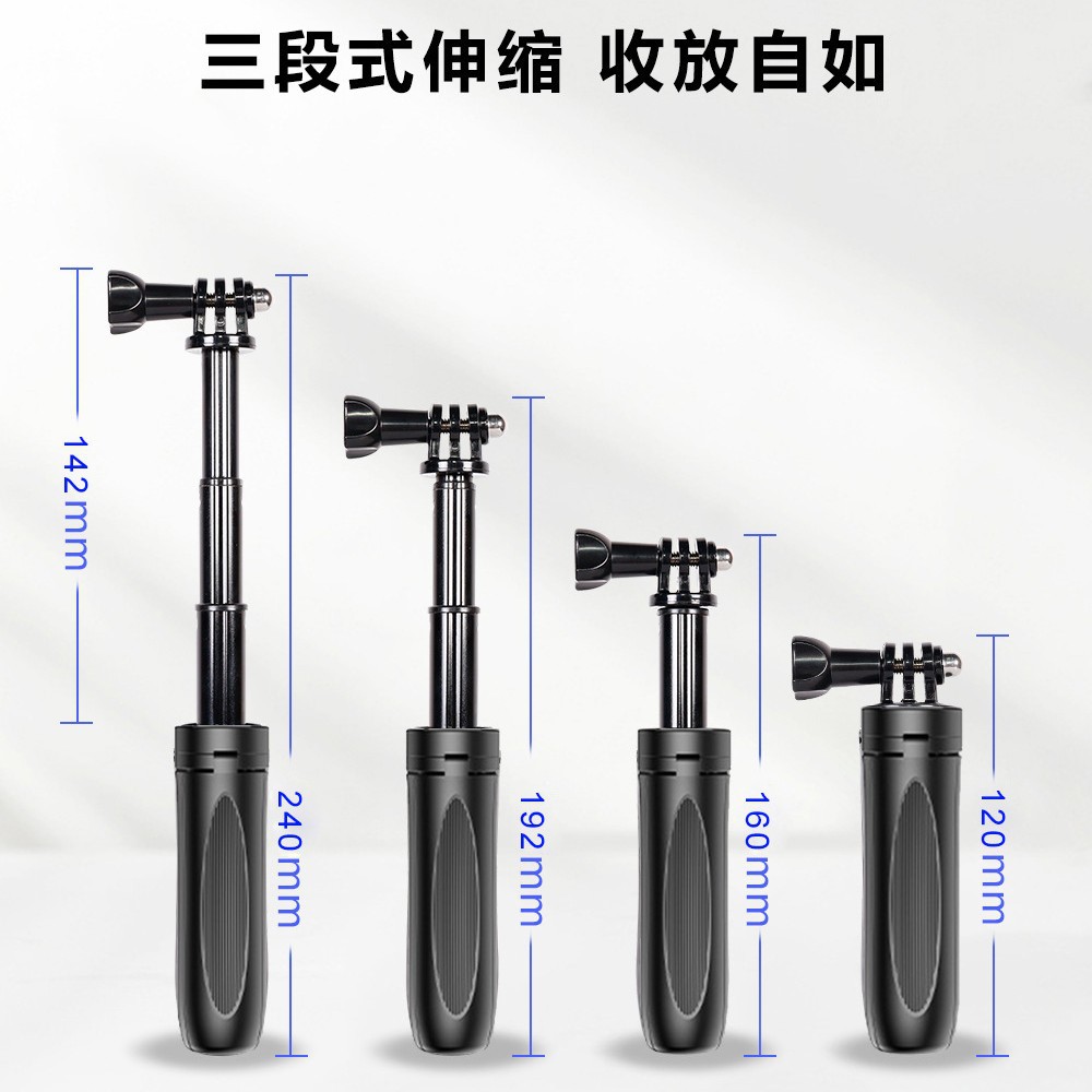 Cocok untuk aksesori GoPro, tongkat selfie lipat tiga, lengan yang dapat disesuaikan tiga arah, kamera olahraga, tongkat selfie ponsel
