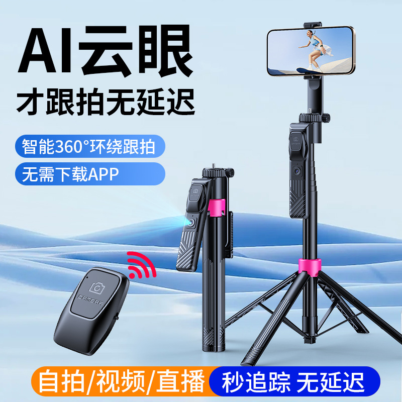 Tongsis dengan pelacak wajah C12, dudukan ponsel untuk siaran langsung, sepenuhnya otomatis