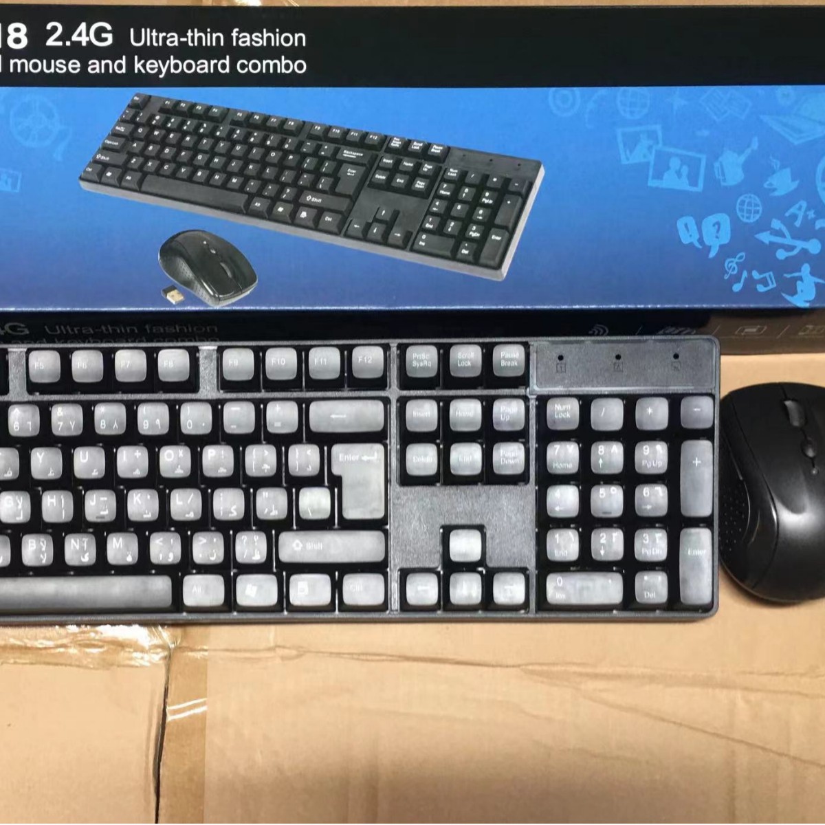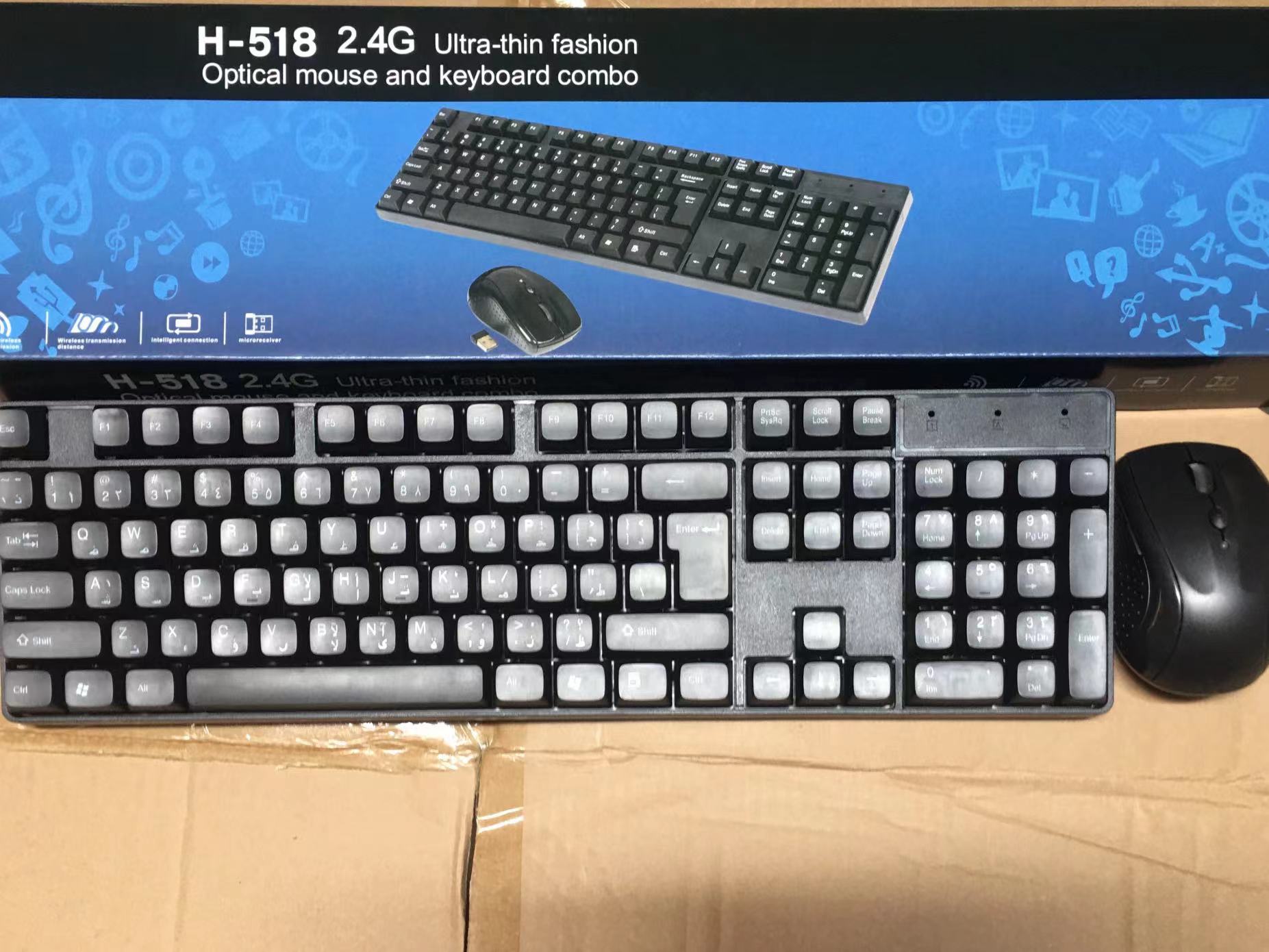H-518 bahasa kecil 2.4g keyboard nirkabel dan mouse sesuai kemasan bahasa Inggris netral Prancis Rusia lintas batas