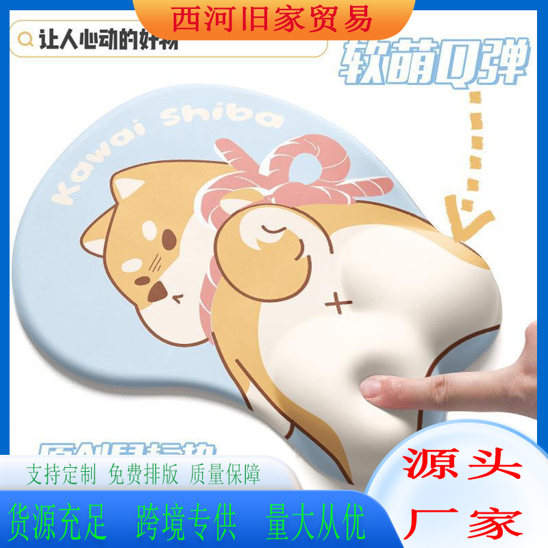 日系柴犬可爱鼠标垫护腕屁股手腕垫立体3d胸橡胶腕托软垫女生ins