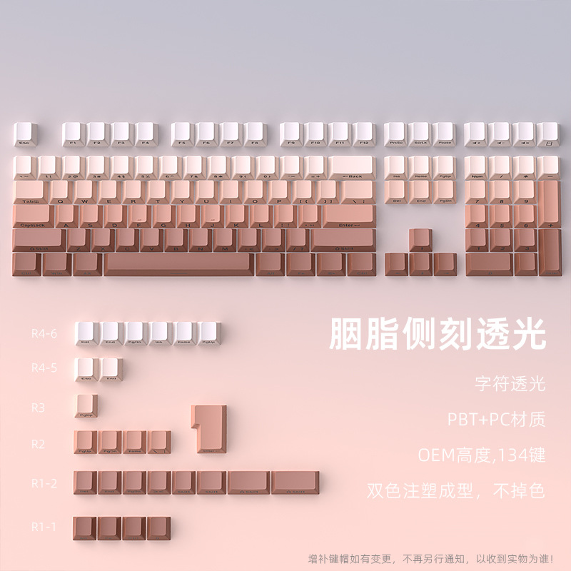 Spot Tersedia Grosir Rouge Gradien Sisi Berukir Cahaya 134 Kunci Kecil Set Lengkap Bahan PBT Tinggi 0EM Dua Warna