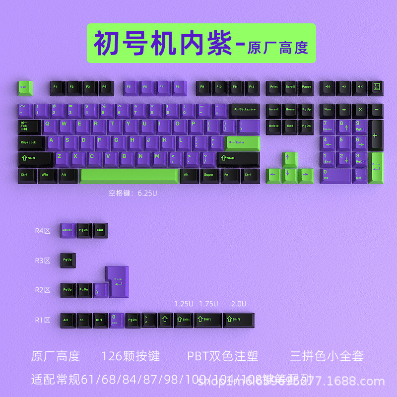 现货批发跨境亚马逊初号机内紫机械键盘键帽PBT材质126小全套原厂