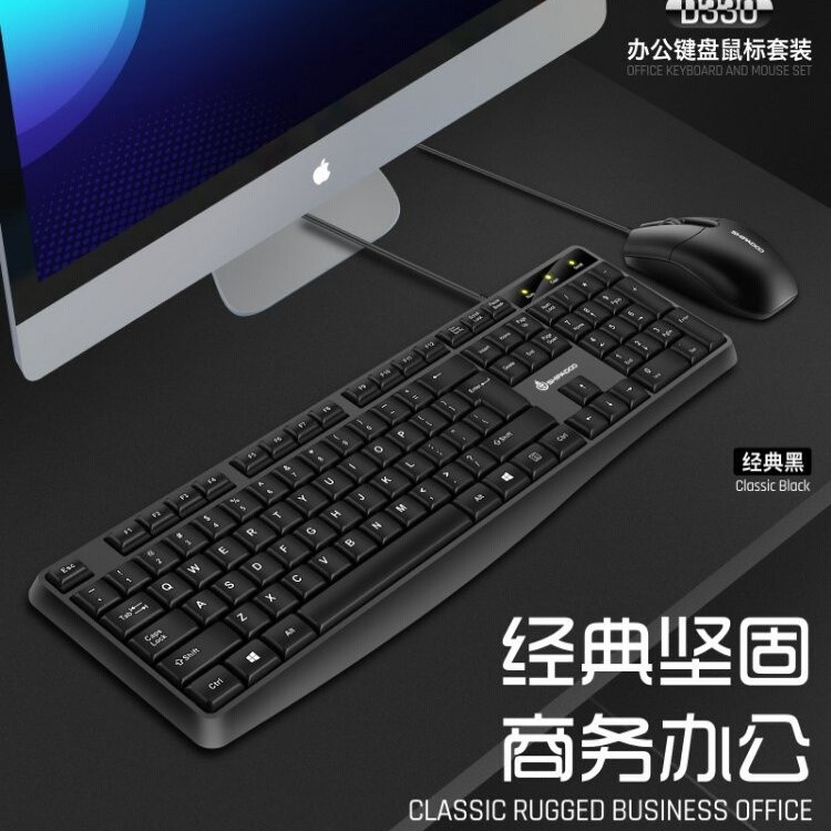 Setelan Keyboard Mouse berkabel, setelan permainan mekanis, kantor, rumah, hitam putih, mouse keyboard desktop USB, grosir