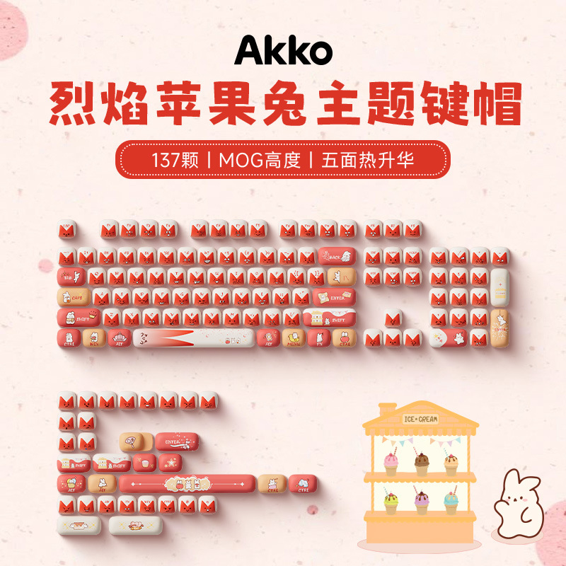 AKKO Flame Apple Rabbit Theme Mechanical Keyboard Keycap Set Hadiah Lengkap Kelinci Tiga Dimensi Lucu untuk Anak Perempuan