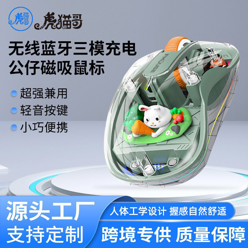 Mouse Transparan Bercahaya Laptop Mouse Nirkabel Bluetooth Tiga Mode Pengisian Daya Ergonomis Boneka Magnetic