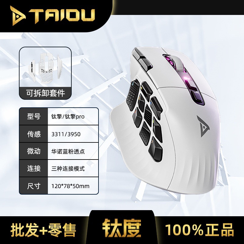 Titanium TSG908 Mouse Mesin Gaming Nirkabel Bluetooth Tiga Mode Dapat Isi Ulang 8K Pemrograman Multi-Tombol untuk Komputer