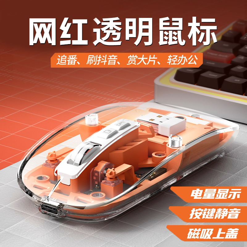 Pabrik Langsung Tembus Mouse Nirkabel Transparan Bluetooth Tiga Mode Mute Mouse Cocok untuk Laptop Permainan Kantor