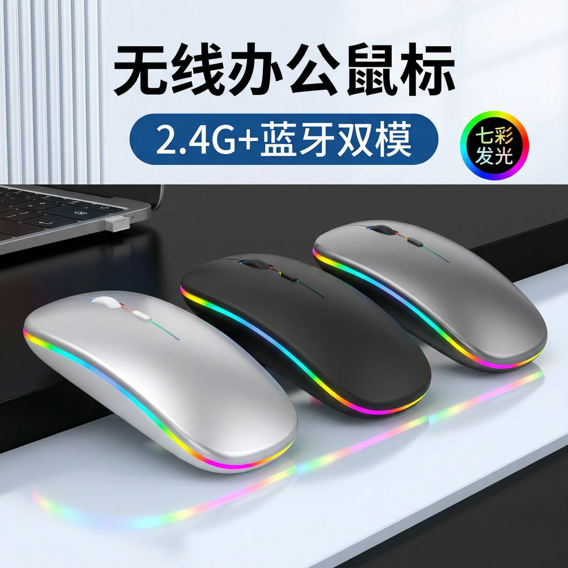 Mouse komputer 2.4g, mouse Bluetooth baru lintas batas mode ganda nirkabel notebook kantor senyap bercahaya dapat diisi ulang