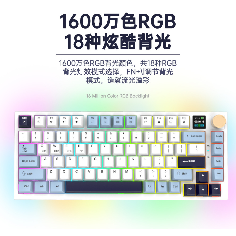 Layar Display Papan Ketik Mekanik Yang Kukusan Penuh Hot Plug-in Gasket Struktur Nirkabel Tiga Mode Bluetooth Permainan Kantor