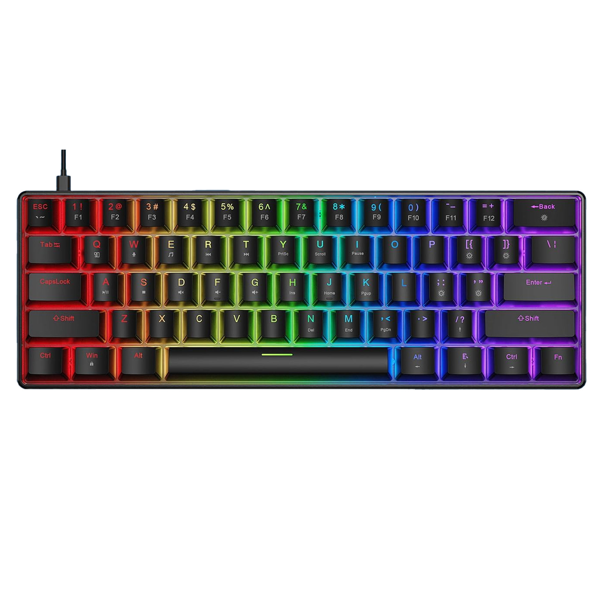 Mini 61 tombol keyboard mekanik sumbu merah berbagai lampu warna-warni keyboard portabel cocok untuk permainan grosir