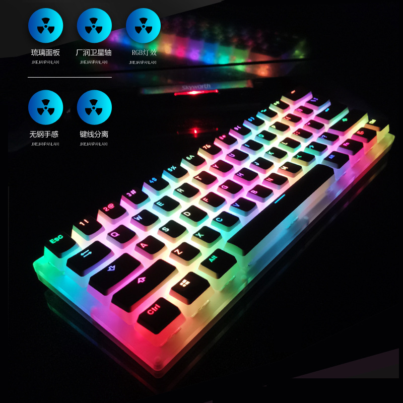 2025 Kit Keyboard Kit 61 Tombol Mekanik Kecil Transparan Akrilik G Yellow Axis RGB Bluetooth Ganda Nirkabel