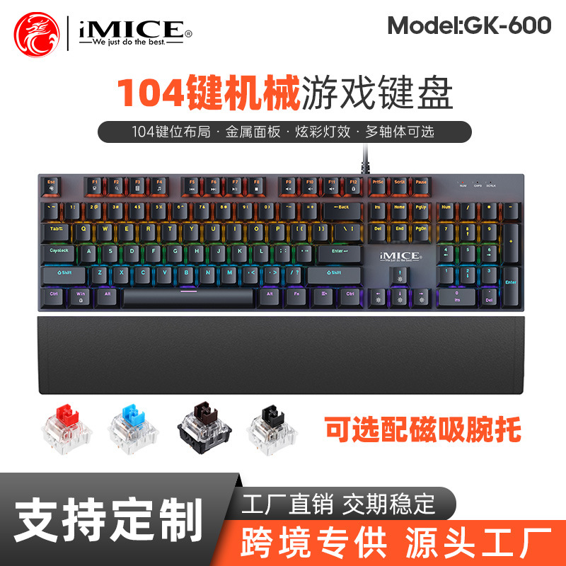 GK-600 kabel batang merah mekanik keyboard desktop dengan RGB bercahaya kunci penuh tanpa pukulan 104 kunci 105