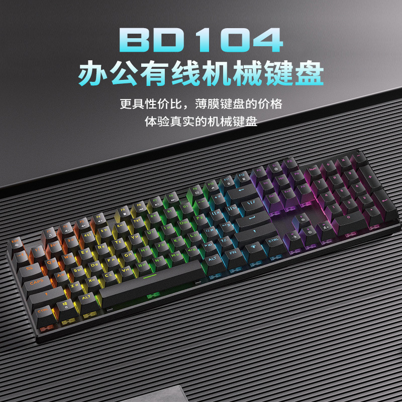 BD104 Keyboard Mekanik Nyata Rusia Berkabel Campuran Cahaya Panas Sumbu Merah Sumbu Teh Permainan Keyboard Rusia