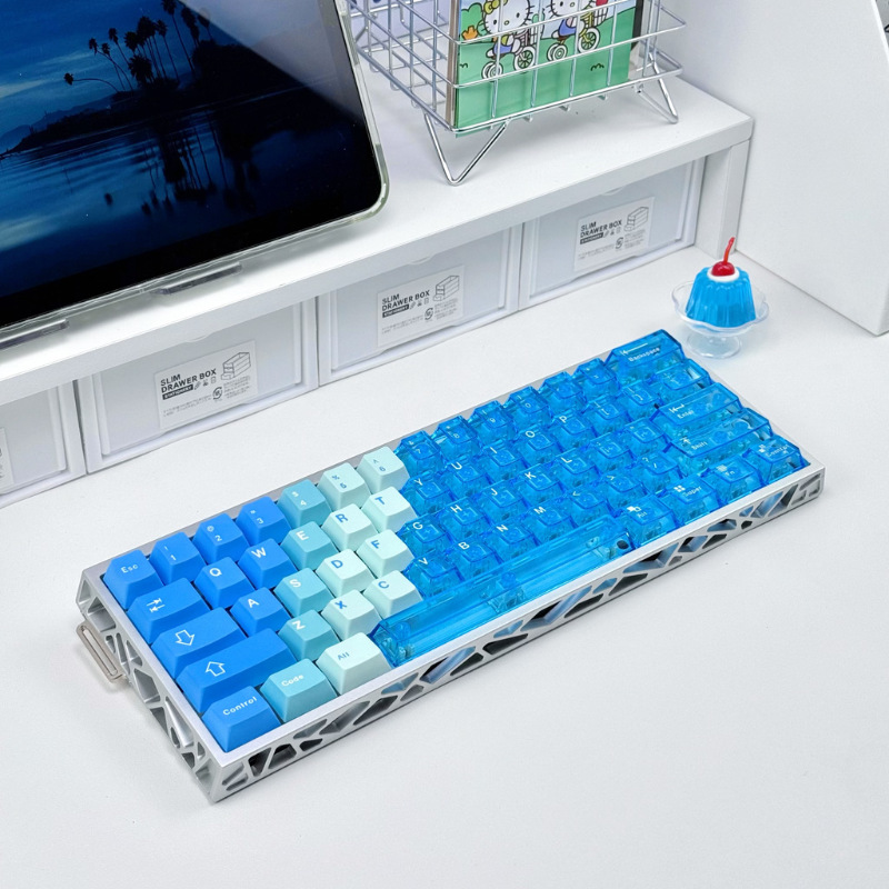 Tombol Tema PBT untuk pejalan kaki depan Keyboard Mekanik Tembus Cahaya Sublimasi Kepribadian 87 Sisi Diukir Kepribadian Universal