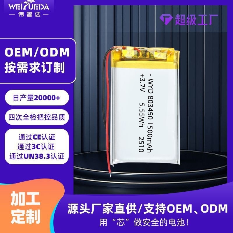 Tempat sampah pintar LED, baterai lithium polimer 803450 1500mA h3.7V, baterai lithium dapat diisi ulang