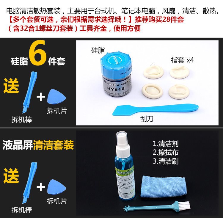 Komputer laptop pembongkaran pembersihan pembuangan panas setelan obeng setelan lembaran tembaga silikon minyak kulit blowing alat pembersih