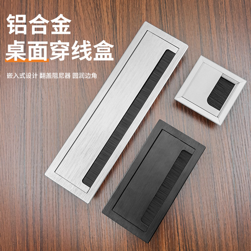 Kotak benang meja komputer desktop multi-fungsi, penutup lubang penyangga persegi peredam dengan sikat penutup dekoratif