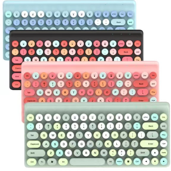 Keyboard mekanis nirkabel portabel warna, perlengkapan mengetik komputer kantor tombol dot lucu retro