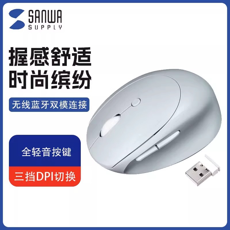 Jepang SANWA Mouse Bluetooth Nirkabel Ergonomis Pengisian Suara Bisu 3 Model Komputer Meja Universal Pegangan Vertikal Pria dan Wanita