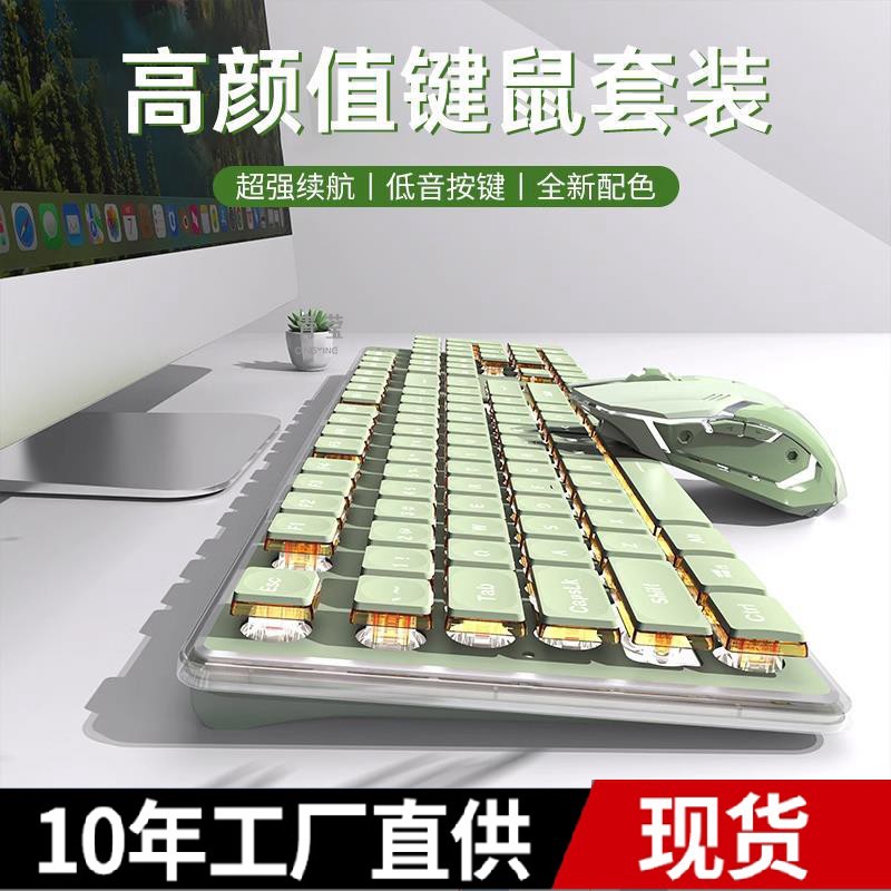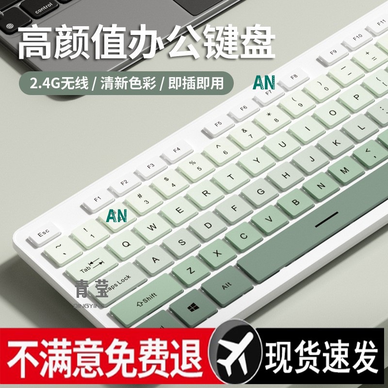 Keyboard Mesin Kantor Warna Hijau Set Nirkabel Gadis V3 Mouse Komputer Depan Merasa Diam