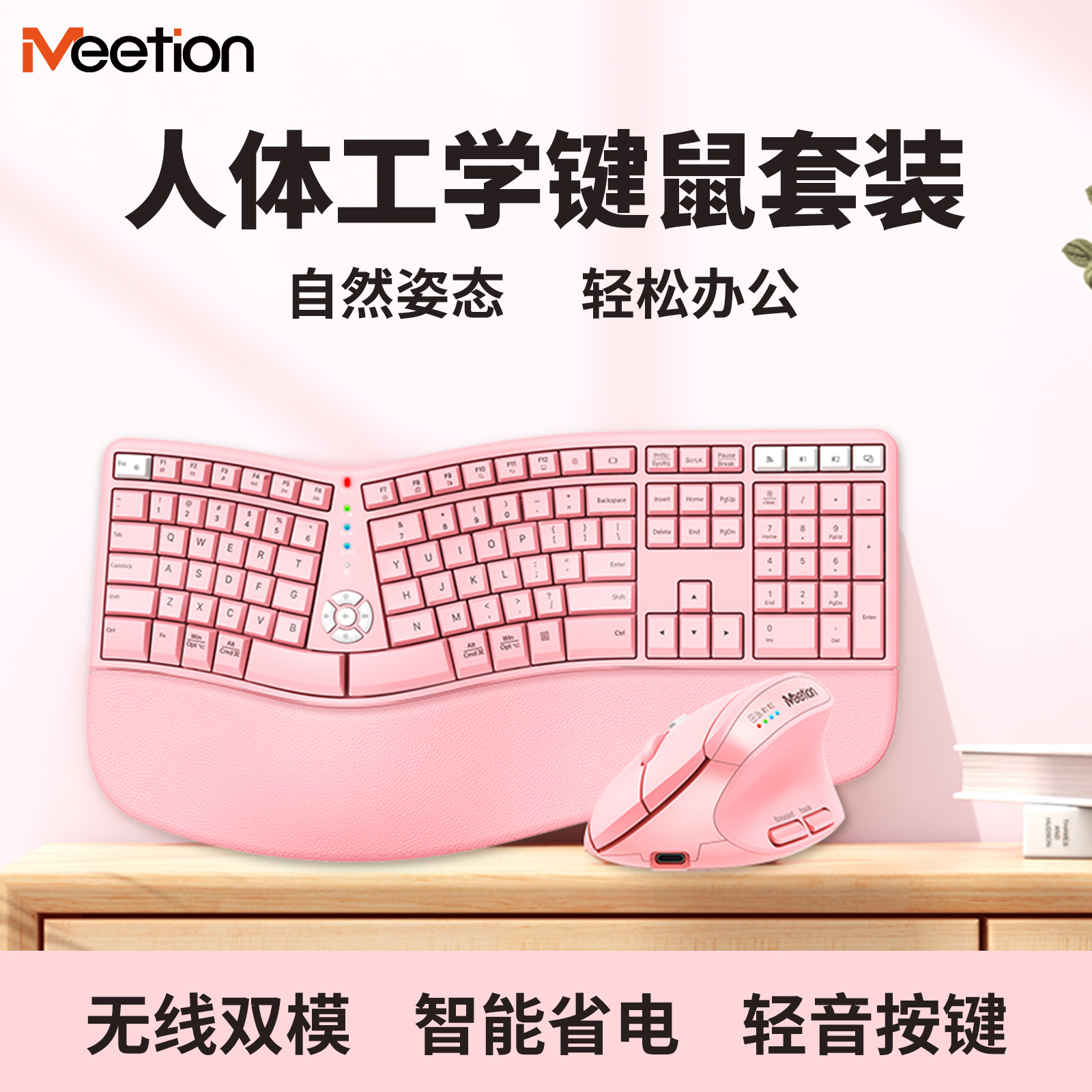 Set keyboard dan mouse ergonomis dual mode nirkabel Bluetooth dengan palmtop kantor MEETION Mi Shen DirectorC2