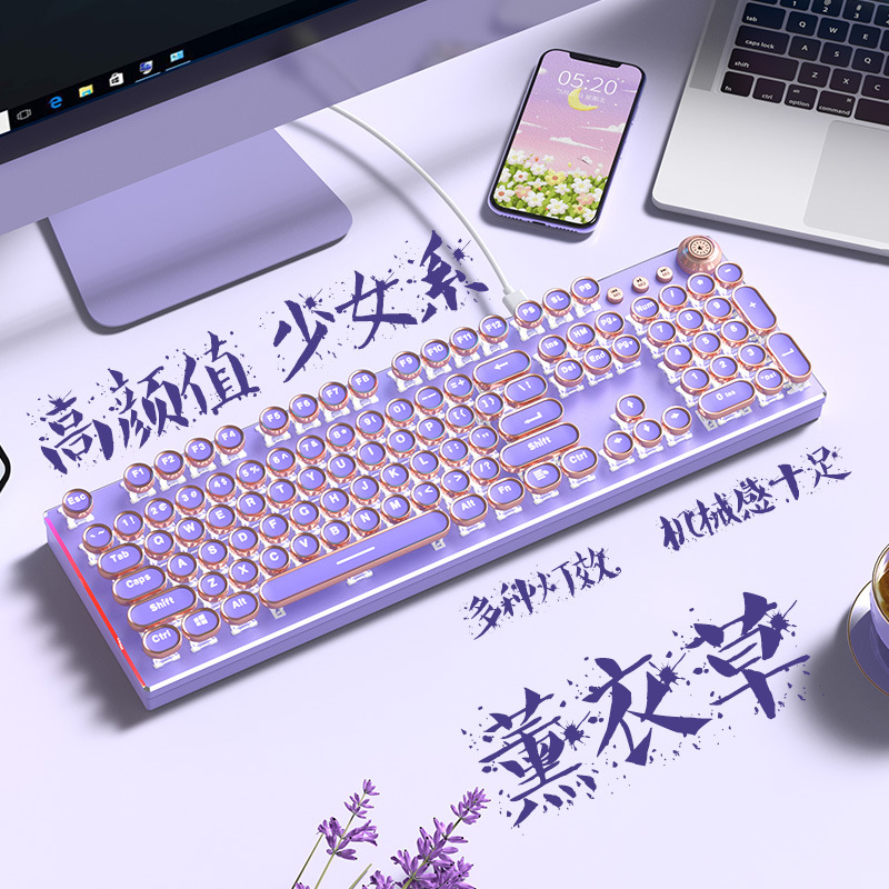 Set Keyboard Mekanik Punk Wireless Sumbu Hijau Permainan E-sports Berkabel Anak Perempuan Set Keyboard Bluetooth Kantor