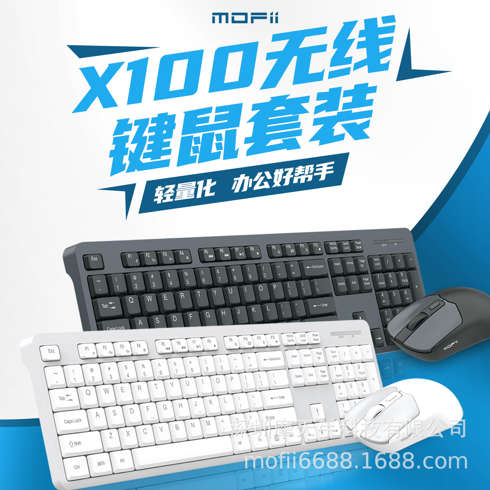 Mofii Papan Ketik Nirkabel Pencakar Langit Set Tombol dan Mouse Khusus untuk Kantor Komputer Desktop Laptop Suara Ringan