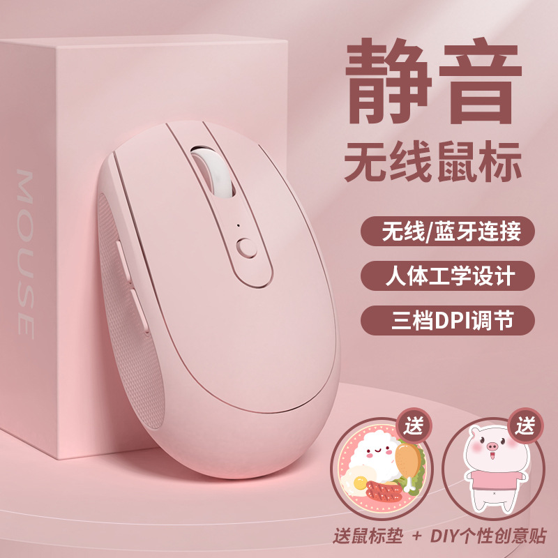 Mouse Bluetooth mode ganda nirkabel isi ulang, mouse komputer desktop laptop anak perempuan lucu senyap