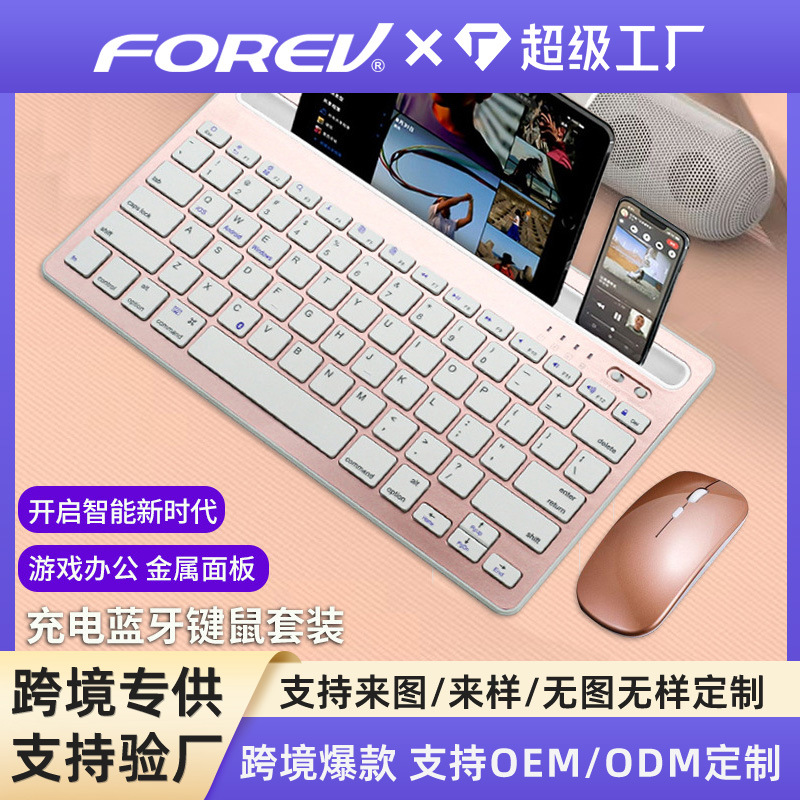 Keyboard Bluetooth cocok untuk iPad, Xiaomi, Huawei, dan dapat dihubungkan ke ponsel dan tablet. Keyboard ini dapat diisi ulang dan termasuk satu set keyboard dan mouse nirkabel.