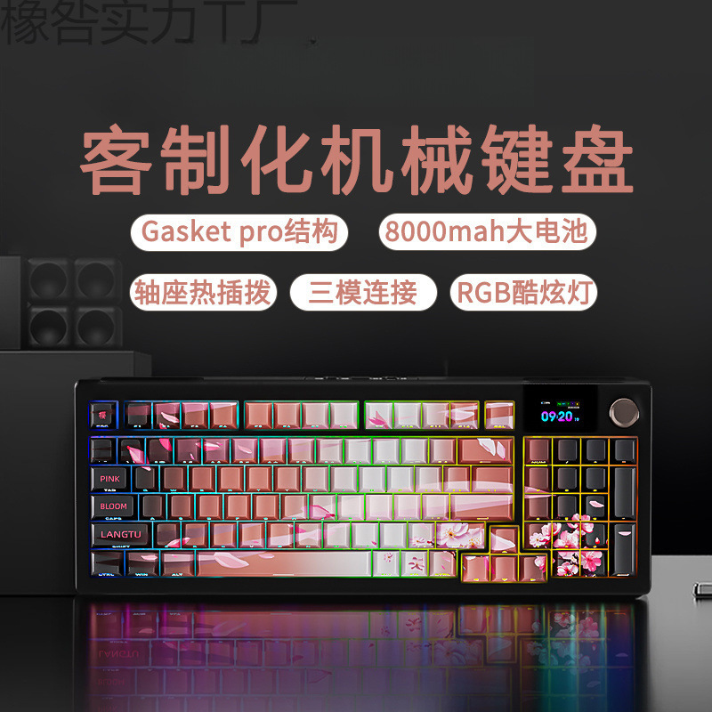 Keyboard mekanik LT95 yang disesuaikan nirkabel Bluetooth tiga mode keyboard elektronik permainan kantor lampu RGB