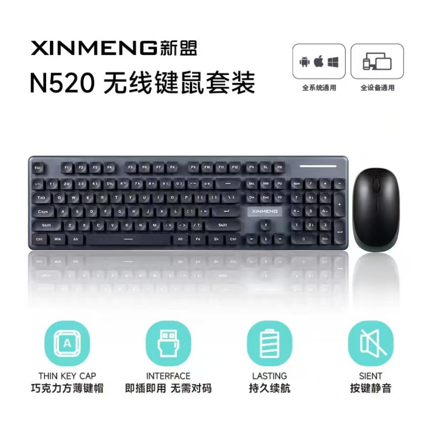 Xinmeng keyboard nirkabel dan mouse, setelan isi ulang daya Tablet Laptop kantor retro kunci bulat keyboard dan mouse