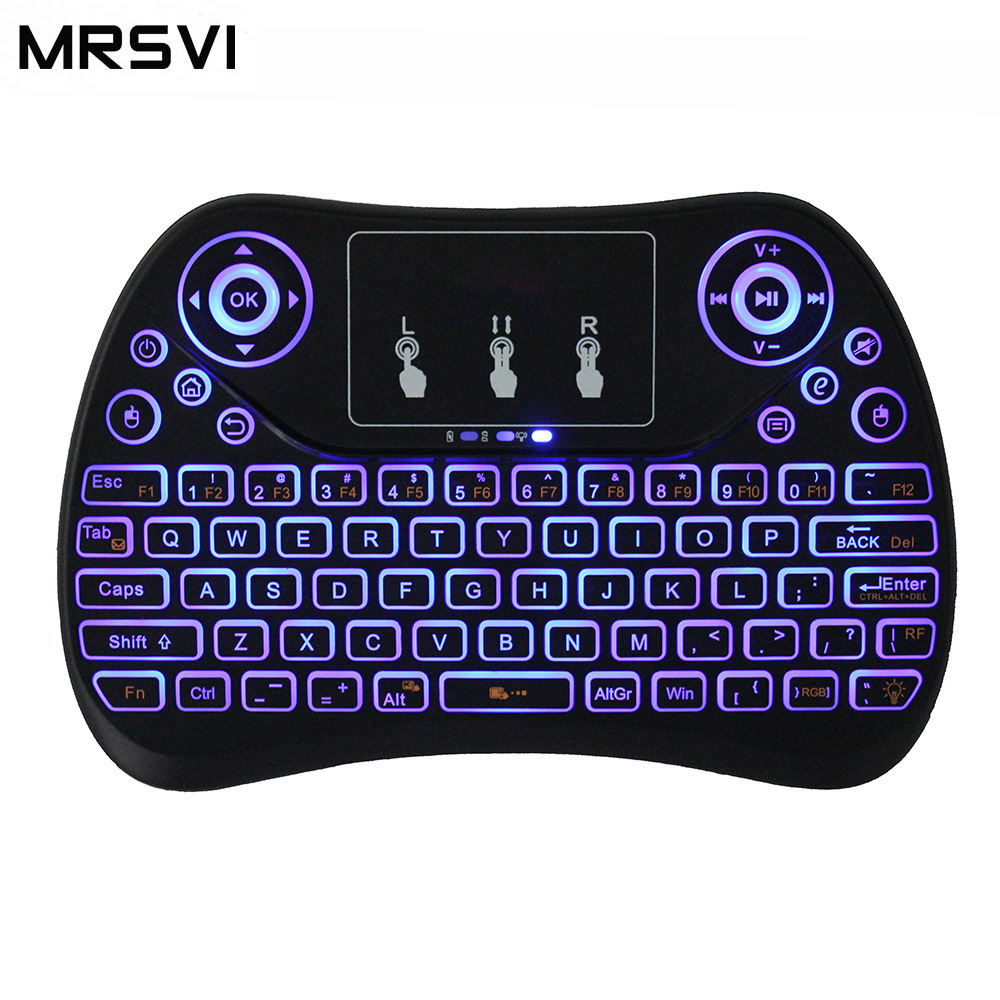 T2-C 2.4G Keyboard nirkabel Mini, papan ketik Sentuh lampu latar tujuh warna Bahasa Inggris Jerman Prancis Italia barat Jepang versi Rusia i8