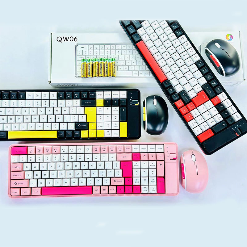 QW06 keyboard mouse nirkabel QW06, warna kontras dua mode Bluetooth, setelan rumah kantor, menghemat daya, keyboard nirkabel Bluetooth