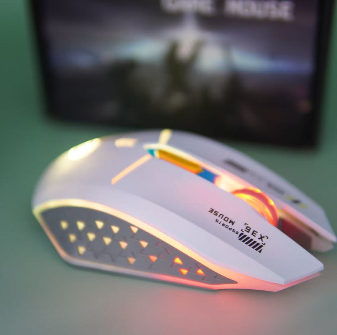 Mouse e-sports berkabel, nirkabel isi daya USB Bluetooth Dual-mode bisu game kantor bercahaya