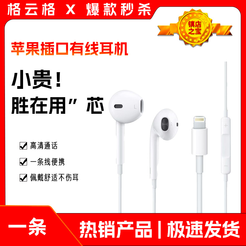 Untuk Apple Headphone Kabel Lightning Headphone Tanpa Keterlambatan Bass Berat Semi In-Ear Headphone