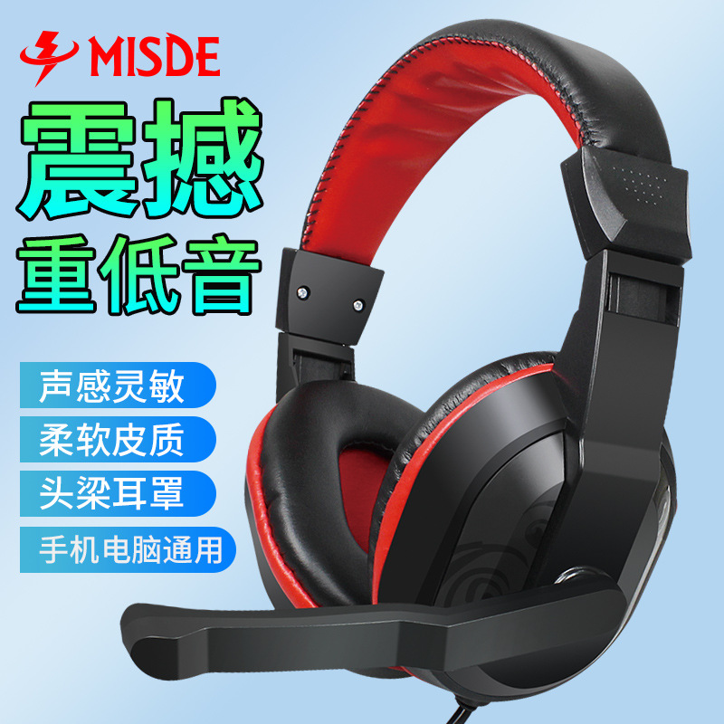Headwalker X8 Headphone Komputer Headphone Headphone Kabel Light Light Bass Berat dengan Mai Double Plug Internet Cafe untuk Pengurangan Kebisingan