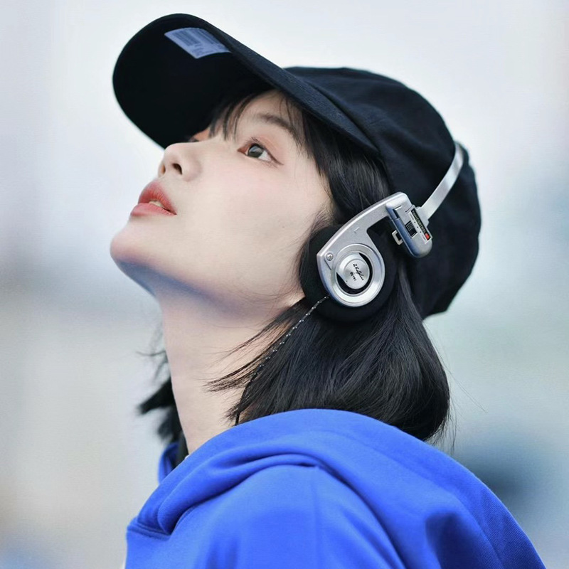 WhatPlus headset Bluetooth nirkabel portabel, headset Bluetooth nirkabel, headset retro portabel, modis, ringan, hadiah