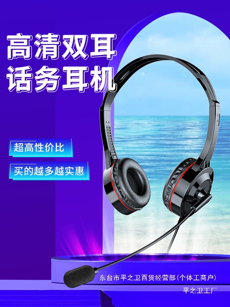 Headset operator layanan pelanggan, headset komputer telepon rumah, headset over-ear untuk panggilan keluar, telemarketing dengan mikrofon peredam bising, bukan grosir