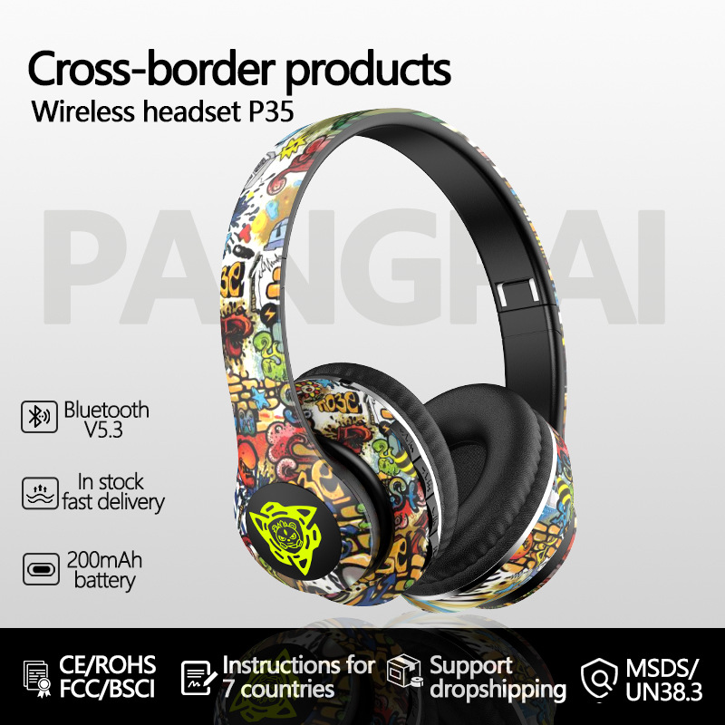 Headset Bluetooth nirkabel P35 populer, headset Bluetooth mode Nasional grafiti lintas batas e-commerce eksklusif untuk produsen untuk panggilan musik