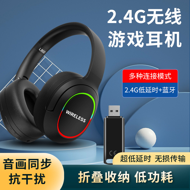 Headset Bluetooth nirkabel 2.4g, headset gaming laptop mikrofon plug-in pemancar RGB dengan pemancar