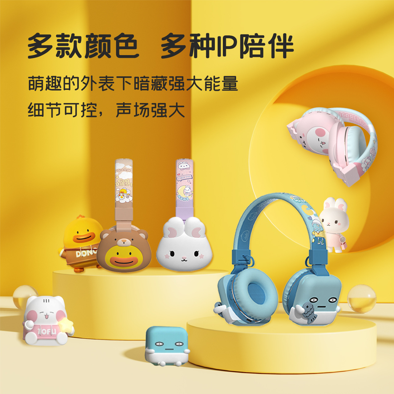 Ike Earphone Musik Nirkabel Bluetooth Kartun Favorit Model Kepala Keluarga Lucu Earphone Anak-Anak Mini Imut Portabel
