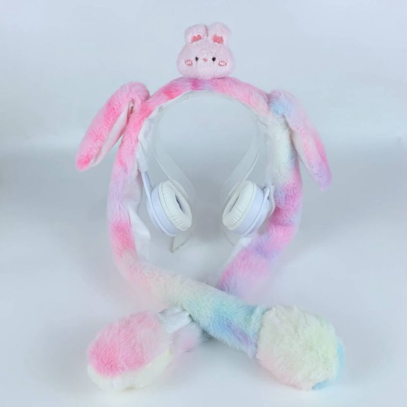 Earphone Mahkota Kartun Kuping Kuping Beludru Telinga Kelinci Dengan Lampu Bluetooth Nirkabel