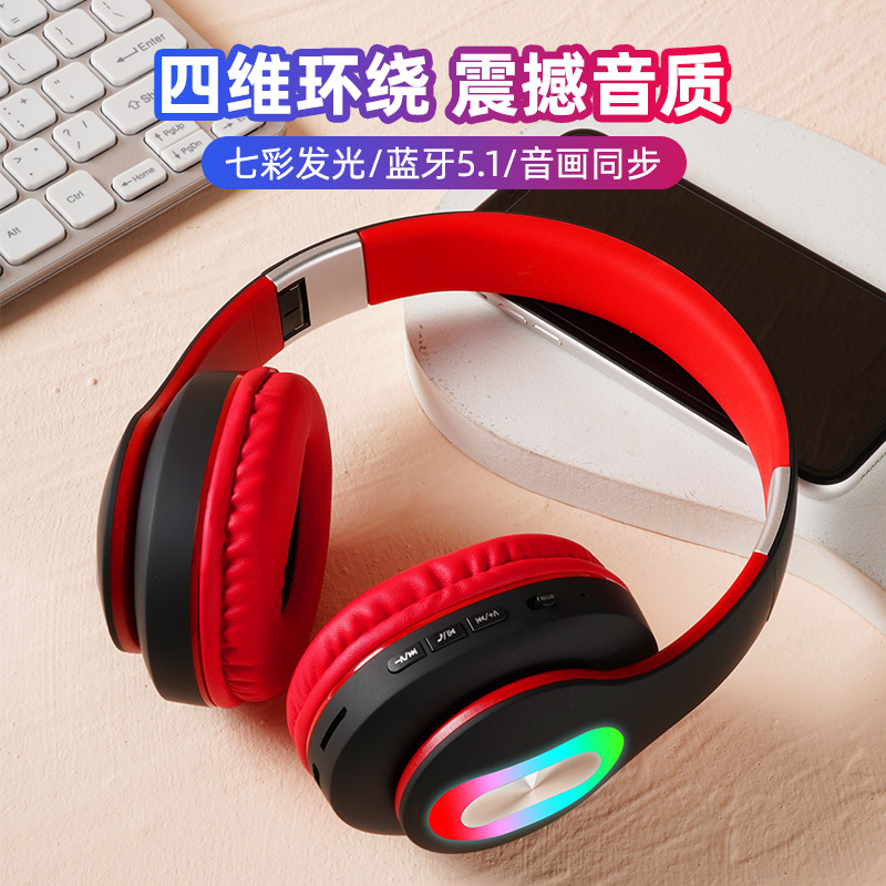 Headset Bluetooth permainan nirkabel lintas batas, headset kartun siaga ultra-panjang sisipan kartu bercahaya RGB