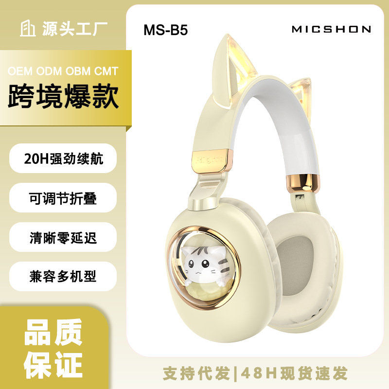 Headset Bluetooth Model Baru Telinga Kucing Bercahaya Lintas Batas