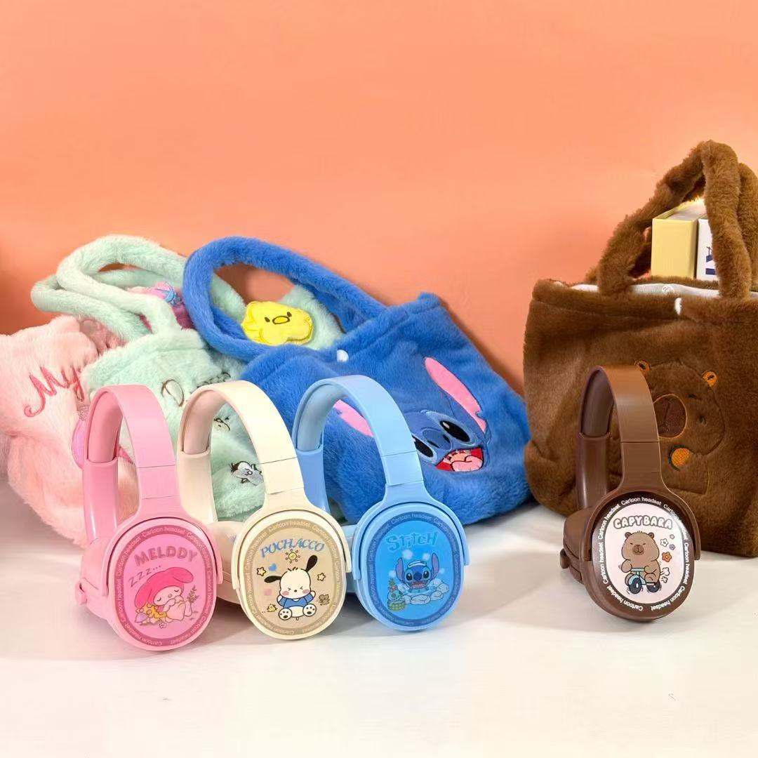 Crossborder New New Headphone Bluetooth Nirkabel Model Kepala Lucu Kartun Motif Headset dengan Tas Pabrik Grosir