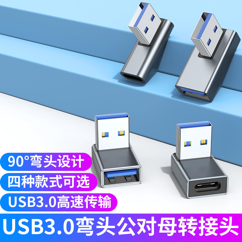 Adaptor USB3.0 tipe-c jantan ke betina siku 90 derajat untuk transfer data laptop dan mendengarkan musik melalui headphone, sudut kanan