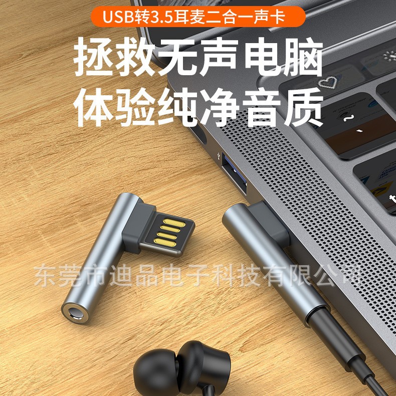 90 ° Siku Dua Sisi Siku Headset Bulat USB 3.5mm Headset Kartu Suara Eksternal Laptop