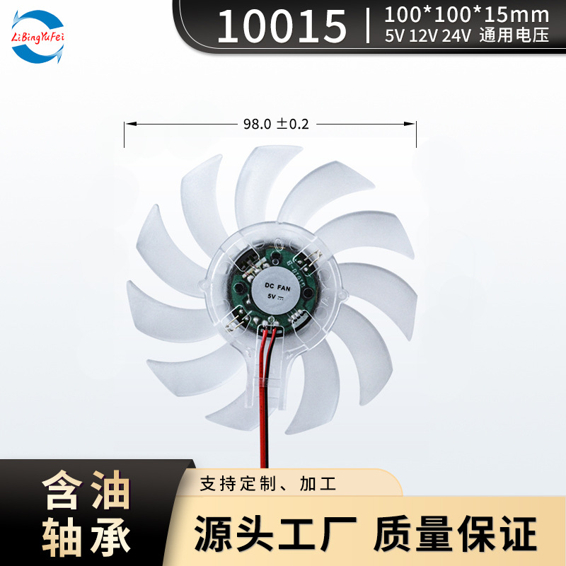 Kipas DC 10015 transparan dengan lampu bantalan radiator laptop dasar kipas pendingin pisau plastik